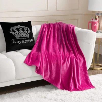 Juicy Couture Solid Plush 50"X70" Throw Blanket, Hot Pink Soft, Cozy, and Designed for Effortless Glam