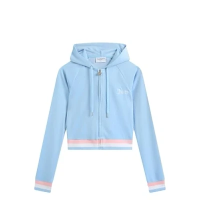 Juicy Couture Stripe Zipup sweatshirt, Women's, Size: Medium, Light blue