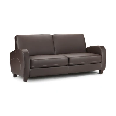 Vivo 3 Seater by Julian Bowen. Vivo is a luxurious and exceptionally stylish sofa that complements most interior styles. The use of high grade foams and soft touch faux leather in a warm chestnut brown ensure enhanced comfort and durability, while subtle contrast stitching provides an attractive accent. Upholstered in soft touch faux leather. High grade foam for enhanced comfort and durability. Subtle contrast stitching. Part of Julian Bowen's Vivo upholstery collection. 12 month product guarantee. Product Details Dimensions: 83.0cm (H) x 183.0cm (W) x 79.5cm (D) Assembly: Partial Assembly Required Material: Hardwood Frame With Foam & Faux Leather Upholstery Colour: Chestnut Brown Seating Capacity: 3.0 Folding Mechanism: No Complete the look with coordinating pieces from our sofas & sofabeds. Explore more in living room furniture.