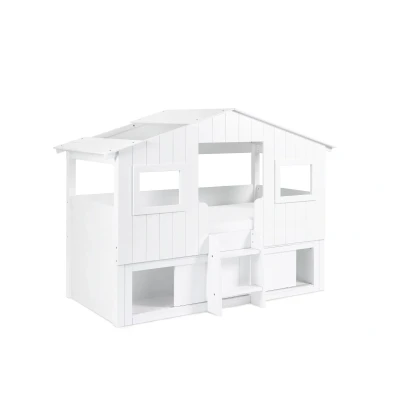 Acorn Treehouse Midsleeper & Storage Unit - White by Julian Bowen. Step into a whimsical woodland wonderland with the Acorn Treehouse Midsleeper & Storage Unit, transforming your child's bedroom into an enchanting escape. This magical treehouse-style bed boasts a charming white panelled front and rooftop adorned with two square windows, sparking imaginative adventures. Watch as your little explorer climbs into their cosy retreat using the two small step ladder and gets lost in endless daydreams while peering out of the roof gap. Below awaits a slide-door storage unit, the perfect hideaway for stowing books and toys - ensuring a tidy and organised space. Features an enchanting treehouse-style design. Delightful white panelling and rooftop windows inspire endless imaginative play. Slide-door storage unit underneath provides great storage for toys and books. Easy access with a small step ladder invites endless daydreaming. Inspire daydreams through the roof gap, perfect for gazing out. Product Details Dimensions: 158.9cm (H) x 122.9cm (W) x 221.0cm (D) Assembly: Full Assembly Required Material: Lacquered MDF Finish: Painted Colour: White Bed Size: Single Recommended Age: 6++ years Slat Type: Solid Distance Between Slats: 6.5cm For a restful night’s sleep, team the Acorn Treehouse Midsleeper & Storage Unit - White with one of our carefully selected mattresses. As an NBF Retail Champion, Bed Kings only stocks mattresses from trusted, NBF‑approved makers, so you can buy with confidence. You can also browse our range of kids beds, bunk beds & gaming beds.