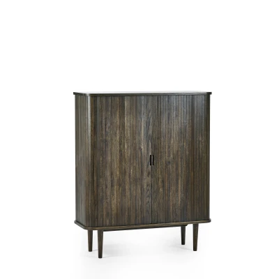 Arya Wine Cabinet by Julian Bowen. Add a touch of elegance to your home with the Arya Wine Cabinet, designed to keep your favorite wines and accessories organised while you entertain in style. Crafted with a rich dark oak effect, this clean-lined bar cabinet features slatted sliding tambour doors for a modern, sophisticated look. Inside, it offers ample storage with a stemware rack that holds up to four glasses, a wine rack for six standard-sized bottles, and additional shelves for extra essentials. The two cut-out handles and four Nordic-style legs provide a refined, functional touch. Perfect for hosting guests or simply enjoying a quiet drink, bringing both style and organisation to your home. Simple assembly required to prepare it for use without hassle. Dark oak finish exudes timeless charm. Sliding doors offer sleek, hidden access inside. Spacious racks hold six wine bottles securely. Stemware rack stores up to four glasses safely. Nordic-inspired legs add a stylish flair. Product Details Dimensions: 120.0cm (H) x 100.0cm (W) x 40.0cm (D) Assembly: Full Assembly Required Material: OAK/MDF Finish: Painting Colour: Dark Brown Top Surface Weight Capacity: 100.0kg Cable Management: No Complete the look with coordinating pieces from our dining sets. Explore more in dining room furniture.