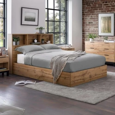AmazonRadiates rustic allure with its stunning natural oak finish, seamlessly complementing a range of interior styles Features a convenient built-in bookcase headboard for storing your cherished book collections Utilises a gas-powered lift-up system for effortless access to underneath storage, ensuring convenience in your daily routine. Offers ample storage space for clothing, extra bedding, and towels, for a tidy and organised space H 105 x W 148 x D 213.5cm