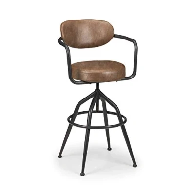 Barbican Barstool by Julian Bowen. The iconic design of the Barbican Barstool is a piece of revived history, influenced by the statement barber chairs, a perfect eye-catching centrepiece for any room. Crafted from a black metal frame with a brown faux leather upholstered seat pad and back rest, this historic, industrial design excels in comfort. Iconic design influenced by the statement barber chair. Eye-catching centrepiece for any room. Crafted from a black metal frame with a brown faux leather upholstered seat pad and back rest. Industrial design. 12 month product guarantee. Product Details Dimensions: 110.0cm (H) x 55.0cm (W) x 51.0cm (D) Assembly: Full Assembly Required Material: Brown Faux Leather & Metal Frame Colour: Brown/Black Complete the look with coordinating pieces from our dining sets. Explore more in dining room furniture.