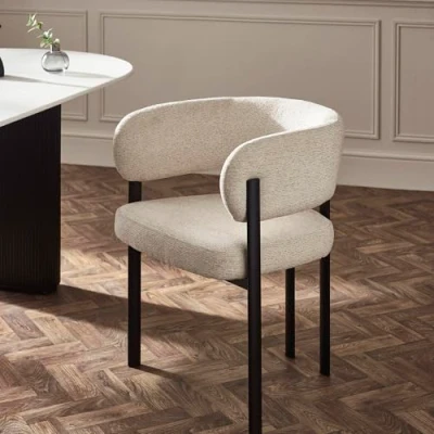 SUPPORTIVE COMFORT: Curved backrest and padded seat deliver a comfortable dining experience, ideal for everyday use or entertaining guests. ELEGANT UPHOLSTERY: Finished in a soft cream chenille fabric that blends seamlessly into a variety of interior styles, from modern to traditional. STYLISH CONTRAST: Black metal legs provide sturdy support while adding a striking, contemporary edge. DIMENSIONS - Height - 73cm x Width 50cm x 53 Depth. Assembly Required. WHAT’S INCLUDED: You will receive a set of TWO dining chairs. No Assembly Required.