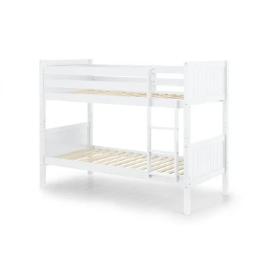 Bella Bunk Bed - Surf White by Julian Bowen. The Bella Bunk has a robust construction, crafted from solid pine and MDF in a choice of a white, anthracite or dove grey lacquered finish. Featuring a timeless panelled headboard and footboard, this space saving bunk is perfect for shared bedrooms and sleepovers. Crafted from solid pine and MDF. Available in a White, Anthracite or Grey lacquered finish. Beautiful panelled headend and footend creating a timeless design. Space saving design suitable for shared bedrooms and sleepovers. 12 month product guarantee. Product Details Dimensions: 154.0cm (H) x 98.3cm (W) x 200.8cm (D) Assembly: Full Assembly Required Material: Lacquered Pine & MDF Colour: White Bed Size: Single Recommended Age: 6++ years Slat Type: Solid Distance Between Slats: 6.5cm For a restful night’s sleep, team the Bella Bunk Bed - Surf White with one of our carefully selected mattresses. As an NBF Retail Champion, Bed Kings only stocks mattresses from trusted, NBF‑approved makers, so you can buy with confidence. You can also browse our range of kids beds, bunk beds & gaming beds.