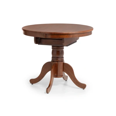 Canterbury Round To Oval Extending Table - Mahogany by Julian Bowen. This Canterbury table brings a touch of elegance to any room, with its stylish pedestal base. Finished in a mahogany colour, this Canterbury table offers space saving practicality, extending to an oval table with can fit six people with an easy-to-use butterfly mechanism. Constructed from Solid Malaysian Hardwood, this traditional design will create a statement piece in your dining area. Stunning Mahogany lacquered finish.. 90cm diameter when closed, extending to 120cm oval when open.. A sturdy pedestal base ensuring durability.. Constructed from Rubberwood. 12 month product guarantee. Product Details Dimensions: 77.0cm (H) x 120.0cm (W) x 90.0cm (D) Assembly: Full Assembly Required Material: Lacquered Rubberwood Colour: Mahogany Seating Capacity: 6.0 Complete the look with coordinating pieces from our dining tables. Explore more in dining room furniture.