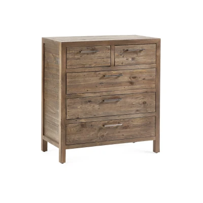 Heritage 3+2 Drawer Chest by Julian Bowen. Heritage is constructed using reclaimed and recycled wood - making each piece unique and distinct. The Heritage 3+2 Drawer Chest has a distressed finish and is combined with industrial style metal handles that complete the look. The original imperfections are what make these pieces so unique and provide a distinct character in your bedroom space. With spacious drawers, this chest not only looks good, but provides the storage space you need. See the wide ranging Heritage Collection for the perfect matching pieces. Constructed with recycled and reclaimed wood - promotes sustainability, durability, alongside a gorgeous aesthetic. Each piece is unique and distinct. Strong, durable chest. Distressed finish would look great in an industrial space. Ample storage space for your bedroom necessities. Product Details Dimensions: 90.0cm (H) x 43.5cm (W) x 84.0cm (D) Assembly: No Assembly Needed Material: Reclaimed Pine Colour: Cashew Number of Drawers: 5.0 For a restful night’s sleep, team the Heritage 3+2 Drawer Chest with one of our carefully selected mattresses. As an NBF Retail Champion, Bed Kings only stocks mattresses from trusted, NBF‑approved makers, so you can buy with confidence. You can also browse our range of beds.