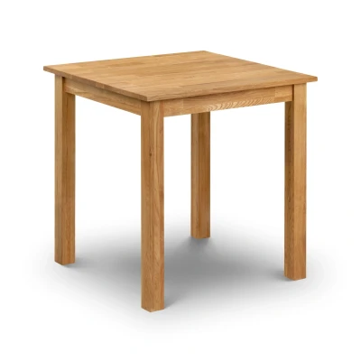 Coxmoor 75cm Square Dining Table - Oak by Julian Bowen. This compact solid oak dining table in a rich oiled finish, is suitable for small kitchen diners. This classic, timeless design adds extra room for you to enjoy your daily meals. A Solid Oak Square Dining Table in a durable oiled finish.. A compact, classic and timeless table that is perfect for small kitchen diners.. A Wide range of co-ordinating items are available in the Julian Bowen Coxmoor range making it ideal for any home situation. Also co-ordinates with the Julian Bowen Hudson Chairs.. Simple self-assembly required. 12 month product guarantee. Product Details Dimensions: 75.0cm (H) x 75.0cm (W) x 75.0cm (D) Assembly: Full Assembly Required Material: Oak Colour: Oak Complete the look with coordinating pieces from our dining tables. Explore more in dining room furniture.