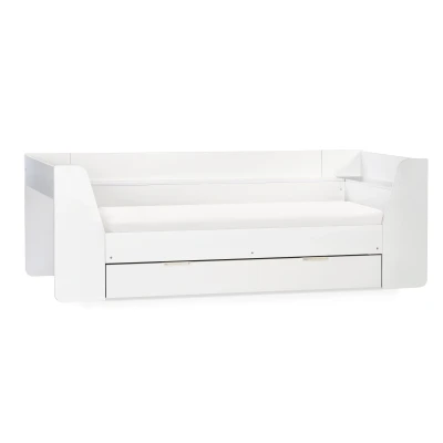 Cyclone Daybed All White by Julian Bowen. Offering a modern look, the Cyclone Daybed provides the perfect blend of style and functionality to any kid's bedroom. Featuring a large pull-out drawer with two embedded handles and a shelving unit on the top ideal for storing and organising key essentials. Creating the perfect versatility for your little ones for lounging and sleeping. Available in All White and Taupe. Offering a modern look to any kid's bedroom A large pull-out drawer & shelving unit above the bed, ideal for storage and organising essentials Perfect versatility for lounging and sleeping for little ones Available in Taupe and All White 12-month product guarantee Product Details Dimensions: 79.5cm (H) x 113.5cm (W) x 232.0cm (D) Assembly: Full Assembly Required Material: Particleboard, Metal, Lvl Colour: White Bed Size: Single Slat Type: Solid Distance Between Slats: 6.5cm For a restful night’s sleep, team the Cyclone Daybed All White with one of our carefully selected mattresses. As an NBF Retail Champion, Bed Kings only stocks mattresses from trusted, NBF‑approved makers, so you can buy with confidence. You can also browse our range of beds.