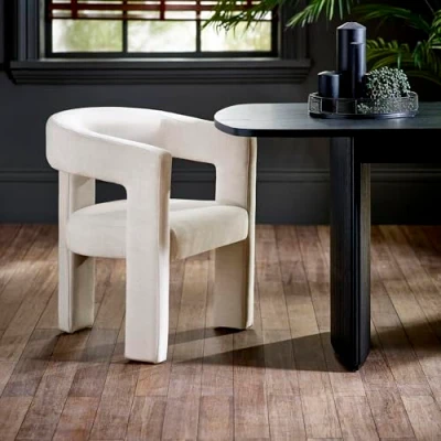 AmazonELEGANT CHENILLE TEXTURE: The chenille fabric adds warmth and depth, bringing a tactile finish that complements a wide range of interior styles. SUPPORTIVE COMFORT: A gently curved backrest offer a comfortable and inviting seat, perfect for relaxed dining or occasional use. VERSATILE STYLE: Works beautifully as dining room chairs or as standalone accent chairs in living rooms, bedrooms, or entryways. DIMENSIONS: Measuring H 75 x W 65 x D 57cm with a net weight of 15kg. Seat: H 43.5 x W 50 x D 75 cm. Foot/Leg: H 75 x W 7.5 x D 12.5 cm. Sized for everyday use in dining and lounge spaces. WHAT’S INCLUDED: Includes ONE cream upholstered chair. Assembly required. Table sold separately.