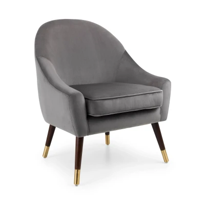 Bed KingsElliot Arm Chair by Julian Bowen. Our Elliot armchair combines high quality design with luxurious materials. Featuring beautifully curved arms and back upholstered in a chic grey velvet, and oak legs tipped with timeless gold - this piece is likely to make any area look classy and chic, whilst keeping you comfortable. High quality design with luxurious materials. Beautifully curved arms and back. Oak legs tipped with timeless gold. Make any area look classy and chic, whilst keeping you comfortable. 12 month product guarantee. Product Details Dimensions: 87.0cm (H) x 75.0cm (W) x 73.0cm (D) Assembly: Full Assembly Required Material: Velvet, Wood & Metal Colour: Grey Seating Capacity: 1.0 Folding Mechanism: No Complete the look with coordinating pieces from our sofas & sofabeds. Explore more in living room furniture.