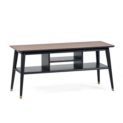 Findlay Media Unit - Walnut & Black by Julian Bowen. The Findlay collection combines retro design elements with a modern twist. With a walnut finish and brass tipped legs – this collection will uplift an eclectic range of décor styles. This collection includes a rectangular dining table, square dining table, coffee table, lamp table, and media unit. Retro design with a modern twist. Brass tipped leg detail. Part on the Findlay Dining and Occasional Collection. This collection will uplift an eclectic range of décor styles. 12 month product guarantee. Product Details Dimensions: 55.0cm (H) x 120.0cm (W) x 45.0cm (D) Assembly: Full Assembly Required Material: MDF & Beech Wood Colour: Walnut & Black Max TV Size: 65.0" Cable Management: Yes Complete the look with coordinating pieces from our tv units. Explore more in living room furniture.