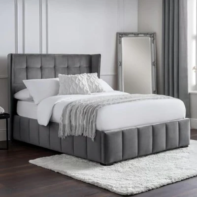 Gatsby Bed by Julian Bowen. Indulge in timeless elegance with the Gatsby Bed, a tribute to refined style and grace. The centerpiece of this exquisite bed is its beautiful winged headboard, adding a touch of sophistication to your bedroom sanctuary. Finished in a sumptuous light grey velvet, the bed exudes luxury, while the detailed headboard introduces adds a modern twist to its classic charm. Elevate your bedroom decor to new heights, where every detail speaks of opulence and enduring allure. Timeless and sophisticated design that enhances any bedroom. Beautiful winged headboard serves as the centerpiece, adding sophistication and a focal point to your sanctuary. Finished in a sumptuous light grey velvet, creating a luxurious and inviting atmosphere. The detailed headboard introduces a modern twist, seamlessly blending contemporary design with timeless allure. 12 month product guarantee. Size Guide Size Height (cm) Width (cm) Depth (cm) Headboard Height (cm) Footend Height (cm) Floor Clearance (cm) Slat Type Distance Between Slats (cm) Leg Height (cm) Leg Width (cm) Double 127.0 157.0 206.0 128.0 40.0 36.0 Sprung 6.5 5.5 11.0 King 127.0 171.0 215.0 128.0 40.0 36.0 Sprung 6.5 5.5 11.0 Product Details Material: Hardwood Frame With Foam And Velvet Upholstery Colour: Light Grey Assembly: Full Assembly Required Slat Type: Sprung Distance Between Slats: 6.5cm For a restful nightÕs sleep, team Gatsby Bed with one of our carefully selected mattresses. As an NBF Retail Champion, Bed Kings only stocks mattresses from trusted, NBF_approved makers, so you can buy with confidence. You can also browse our range of fabric upholstered beds.