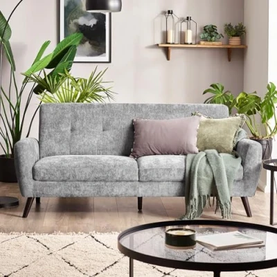 Monza 3 Seater Sofa - Dove by Julian Bowen. The Monza 3 Seater Sofa in Dove Grey combines sleek Scandinavian inspired design with modern comfort, making it a perfect addition to any contemporary living space. Upholstered in chic grey fabric that meets Crib5 standards, its compact, elegant silhouette enhances room decor, while the smooth upholstery provides a tailored and stylish look. The deep seat offers exceptional comfort, ideal for both relaxing and entertaining. With clean lines and a minimalist aesthetic, this sofa effortlessly becomes the centerpiece of your home, and its quick, hassle-free assembly adds to its appeal. Scandinavian style enhances modern interiors. Premium fabric meets flame safety standards. Deep seat for ultimate lounging comfort. Elegant grey fabric for a modern touch. Hassle-free assembly for quick setup and use. Product Details Dimensions: 83.0cm (H) x 192.0cm (W) x 81.0cm (D) Assembly: Full Assembly Required Material: Timber Frame With Foam And Chenille Upholstery Colour: Grey Seating Capacity: 3.0 Seat Height: 50.0cm Seat Width: 160.0cm Seat Depth: 57.0cm Folding Mechanism: No Leg Material: Wood Complete the look with coordinating pieces from our sofas & sofabeds. Explore more in living room furniture.