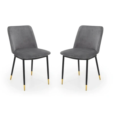 Set Of 2 Delaunay Dining Chairs - Grey by Julian Bowen. The Delaunay Dining Chair offers a simple, modern design finished in a Grey Velvet with black legs and brushed brass tips for an elegant finish. Perfect for adding a touch of glamour to your living room or kitchen space, this elegant chair will perfectly match a range of dining tables. The Delaunay Chair is available in a variety of colours. Simple, modern design. Finished in a grey velvet with black legs and brushed brass tips for an elegant finish. This elegant chair will perfectly match a range of dining tables. Available in Grey, Blue, Mustard or Pink Velvet. 12 month product guarantee. Product Details Dimensions: 81.0cm (H) x 50.0cm (W) x 57.0cm (D) Assembly: Full Assembly Required Material: Velvet/Metal Colour: Grey Seat Height: 49.5cm Complete the look with coordinating pieces from our dining chairs. Explore more in dining room furniture.