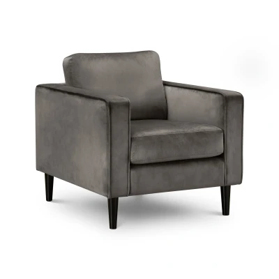 Bed KingsHayward Velvet Armchair by Julian Bowen. The Hayward Armchair will add a modern touch to any home. Finished in an elegant and luxurious deep pile grey velvet fabric, this armchair features a padded frame allowing you to relax in style. Accompanied by two leg colour options - black or light oak, this armchair is the perfect design for a range of home decor. Part of the Hayward Upholstery Range from Julian Bowen. Finished in an elegant grey velvet fabric. Two leg colour options - black or light oak. Modern design, perfect for any home style. Foam padding allowing you to reach maximum comfort. Part of the Julian Bowen Hayward Upholstery Collection. Product Details Dimensions: 86.0cm (H) x 86.0cm (W) x 89.0cm (D) Assembly: Full Assembly Required Material: Timber Frame With Foam And Fabric Upholstery Colour: Grey Velvet Folding Mechanism: No Complete the look with coordinating pieces from our sofas & sofabeds. Explore more in living room furniture.