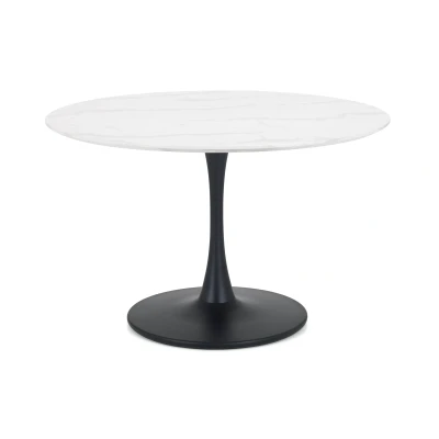 Holland Round Pedestal Table by Julian Bowen. The Holland would be a stunning addition to any smaller dining environment. With its on-trend monochrome palette and showstopping marble finish, it will add a touch of glamour wherever it’s placed. A stunning addition to any smaller dining environment. On-trend monochrome palette. Showstopping marble finish. Suitable to mix and match with a range of Julian Bowen dining chairs. 12 month product guarantee. Product Details Dimensions: 76.0cm (H) x 120.0cm (W) x 120.0cm (D) Assembly: Full Assembly Required Material: MDF & Metal Colour: White Marble Effect & Black Seating Capacity: 4.0 Complete the look with coordinating pieces from our dining tables. Explore more in dining room furniture.