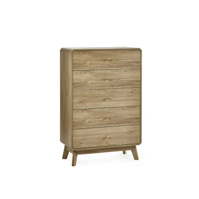 Bed KingsIngrid 5 Drawer Chest Oak by Julian Bowen. Maximise storage without sacrificing style with the Ingrid 5 Drawer Chest. This tall, elegant piece adds warmth and character to any room with its textured wood-effect finish. The gently curved edges and gold-tone handles enhance its sophisticated look, while five spacious drawers offer ample storage to keep your belongings neatly organised. Easy assembly ensures quick enjoyment. Textured wood design adds a touch of warmth. Five roomy drawers for tidy organisation. Softly rounded corners for a graceful appearance. Sleek gold-tone handles for stylish appeal. Simple setup process for swift enjoyment. Product Details Dimensions: 121.8cm (H) x 80.0cm (W) x 40.0cm (D) Assembly: Full Assembly Required Material: Particle Board Finish: Wood Effect Colour: Beige Max Weight Limit: 60.0kg Number of Drawers: 5.0 Drawer Capacity: 8.0kg For a restful night’s sleep, team the Ingrid 5 Drawer Chest Oak with one of our carefully selected mattresses. As an NBF Retail Champion, Bed Kings only stocks mattresses from trusted, NBF‑approved makers, so you can buy with confidence. You can also browse our range of beds.