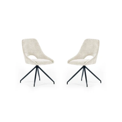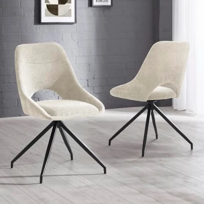 Jonah Set of 2 Cream Chenille Upholstered Dining Chairs by Julian Bowen. Bring warmth and modern style to your space with these elegant swivel dining chairs. Upholstered in a luxurious cream chenille fabric, it features a generously wide, cushioned seat designed for relaxed dining and everyday use. The smooth return swivel function makes movement feel effortless, while the bold black metal base provides a striking contrast and sturdy support. Ideal as statement dining room chairs, they bring a stylish, contemporary touch to any interior. Assembly is simple, just attach the base. Table sold separately. Upholstered in elegant cream chenille fabric. Wide cushioned seat for relaxed seating. Smooth return swivel for easy movement. H 87 x W 49 x D 45cm; 16.4kg. Set of 2 dining room chairs. Product Details Dimensions: 87.0cm (H) x 49.0cm (W) x 45.0cm (D) Assembly: Partial Assembly Required Material: Seoul Fabric, foam,plywood, metal Finish: Upholstery Colour: Cream Seat Height: 49.0cm Complete the look with coordinating pieces from our dining chairs. Explore more in dining room furniture.