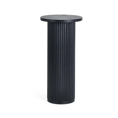 Louis Fluted Drinks Table - Black by Julian Bowen. Elevate your space with the Louis Drinks Table in Black, a luxurious addition that seamlessly combines sleek design with opulent detailing. Finished in sumptuous matt black, this table showcases panelled fluted detailing on a pedestal design, creating a sophisticated focal point. The round base adds a touch of modern elegance, effortlessly blending timeless charm with contemporary style. Its top provides the perfect space for drinks, adding both functionality and style to your space. Elevate your home ambiance with this luxurious addition. Sleek black finish with elegant fluted panel accents. Elegant pedestal base adds luxe ambiance. Compact size fits perfectly in tight spaces. Arrives fully built, no setup needed. Product Details Dimensions: 60.5cm (H) x 30.0cm (W) x 30.0cm (D) Assembly: No Assembly Needed Material: Ash, Ash Veneer, MDF Colour: Black Complete the look with coordinating pieces from our lamp tables & side tables. Explore more in living room furniture.