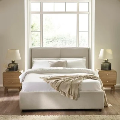 Maddock Ottoman Storage Bed by Julian Bowen. Bring refined style and practical function to your bedroom with this beautifully upholstered ottoman bed. Wrapped in soft beige fabric, it features a smooth, padded headboard with subtle split-panel detailing, offering support and elegance to your bedroom. The low footboard and clean frame keep the silhouette sleek, while the lift-up base reveals generous underbed storage, perfect for bedding, clothing, or everyday essentials. Blending smart design with timeless appeal, this upholstered bed frame suits both minimalist and cosy interiors. Assembly required. Mattress sold separately. Elegant beige upholstered bed frame. Lift-up base with generous storage. Soft woven fabric with padded headboard. W 149 x D 222 x H 110 cm; 88kg Includes ONE bed frame; Assembly required. Size Guide Size Height (cm) Width (cm) Depth (cm) Headboard Height (cm) Footend Height (cm) Floor Clearance (cm) Slat Type Distance Between Slats (cm) Leg Height (cm) Leg Width (cm) Leg Depth (cm) Underbed/Ottoman Storage (H _ W _ D) Double 111.5 149.0 222.0 105.0 5.0 5.0 Sprung 75.0 5.0 5.0 5.0 24.0cm (H) x 138.0cm (W) x 192.0cm (D) King 111.5 163.0 230.0 105.0 5.0 5.0 Sprung 75.0 5.0 5.0 5.0 24.0cm (H) x 152.0cm (W) x 201.0cm (D) Product Details Material: Polyester Fabric, Foam, Non-woven fabric, Wood , Metal Finish: UPHOLSTERY Colour: Beige Assembly: Full Assembly Required Slat Type: Sprung Distance Between Slats: 75.0cm Recommended Age: Does Not Apply+ years For a restful nightÕs sleep, team Maddock Ottoman Storage Bed with one of our carefully selected mattresses. As an NBF Retail Champion, Bed Kings only stocks mattresses from trusted, NBF_approved makers, so you can buy with confidence. You can also browse our range of fabric upholstered beds.