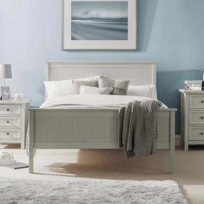 Bed KingsMaine Bed by Julian Bowen. An elegant and simple New England style bed whose characteristic panelling is beautifully finished in an exquisite dove grey lacquer to create a soothing and refined aesthetic with timeless appeal. A solid slatted base ensures supreme comfort and prolonged mattress life. New England style panelling. Exquisite dove grey lacquer. Matches Julian Bowen's beautiful Maine bedroom furniture range. Available in 90cm, 135cm and 150 cm sizes. 12 month product guarantee. Size Guide Size Height (cm) Width (cm) Depth (cm) Headboard Height (cm) Footend Height (cm) Floor Clearance (cm) Slat Type Distance Between Slats (cm) Single 109.0 102.0 200.0 109.0 64.5 24.0 Solid 6.5 Double 109.0 148.5 200.0 109.0 64.5 24.0 Solid 6.5 King 109.0 163.5 208.0 109.0 64.5 24.0 Solid 6.5 Product Details Material: MDF Colour: Dove Grey Assembly: Full Assembly Required Slat Type: Solid Distance Between Slats: 6.5cm For a restful nightÕs sleep, team Maine Bed with one of our carefully selected mattresses. As an NBF Retail Champion, Bed Kings only stocks mattresses from trusted, NBF_approved makers, so you can buy with confidence. You can also browse our range of beds.
