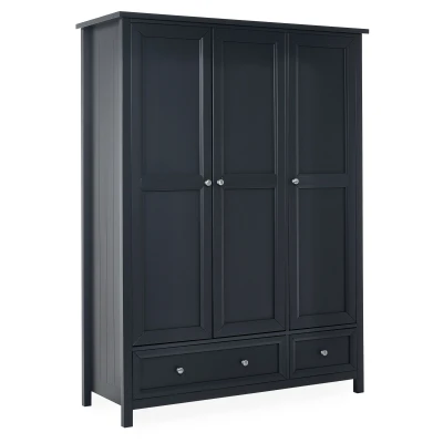 Maine 3 Door Combination Wardrobe - Anthracite by Julian Bowen. An elegant New England style wardrobe with three doors and two drawers. The combination of exquisite anthracite lacquered finish with characteristic side panelling and detailed chamfered cabinetry makes for a soothing and refined aesthetic with timeless appeal, while delicate pewter handles add the perfect finishing touch. Panelled New England style with detailed chamfered cabinetry. Anthracite lacquered finish with pewter handles. 3 doors + 2 drawers. Part of Julian Bowen's Maine bedroom collection. 12 month product guarantee. Product Details Dimensions: 190.0cm (H) x 140.5cm (W) x 55.0cm (D) Assembly: Full Assembly Required Material: MDF Colour: Anthracite Number of Doors: 3.0 Number of Drawers: 2.0 For a restful night’s sleep, team the Maine 3 Door Combination Wardrobe - Anthracite with one of our carefully selected mattresses. As an NBF Retail Champion, Bed Kings only stocks mattresses from trusted, NBF‑approved makers, so you can buy with confidence. You can also browse our range of beds.