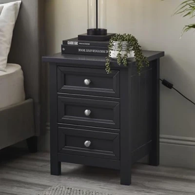 AmazonElegant Design: Crafted from high-quality engineered wood in a sleek Anthracite finish, this Julian Bowen Maine 3 Drawer Bedside adds a touch of sophistication to any bedroom decor. Ample Storage: Featuring three spacious drawers with smooth metal runners and stylish round knobs for easy access to bedside essentials. Sturdy Build: Engineered for durability with robust construction ensuring long-lasting functionality and support for your nighttime necessities. DIMENSIONS: Height 60.5 x Width 48 x Depth 44cm, Net Weight 14.7kg WHAT'S INCLUDED: You will receive x1 Bedside Table/Nightstand Full Assembly Required.