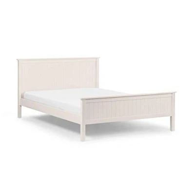 Maine Bed by Julian Bowen. An elegant and simple New England style bed whose characteristic panelling is beautifully finished in an exquisite surf white lacquer to create a soothing and refined aesthetic with timeless appeal. A solid slatted base ensures supreme comfort and prolonged mattress life. New England style panelling. Exquisite surf white lacquer. Matches Julian Bowen's beautiful Maine bedroom furniture range. Available in 90cm, 135cm and 150 cm sizes. 12 month product guarantee. Size Guide Size Height (cm) Width (cm) Depth (cm) Headboard Height (cm) Footend Height (cm) Floor Clearance (cm) Slat Type Distance Between Slats (cm) Double 109.0 148.5 200.0 109.0 64.5 24.0 Solid 6.5 King 109.0 163.5 208.0 109.0 64.5 24.0 Solid 6.5 Product Details Material: MDF Colour: Surf White Assembly: Full Assembly Required Slat Type: Solid Distance Between Slats: 6.5cm For a restful nightÕs sleep, team Maine Bed with one of our carefully selected mattresses. As an NBF Retail Champion, Bed Kings only stocks mattresses from trusted, NBF_approved makers, so you can buy with confidence. You can also browse our range of beds.