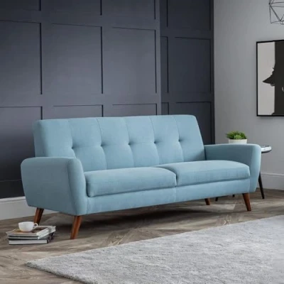Monza 3 Seater Compact Retro Sofa - Blue by Julian Bowen. The Monza Three-Seater Sofa is compact and stylish with retro Scandinavian design influences. It is impeccably tailored in a smart, blue linen fabric. Monza has a seat that is deeper than most similarly sized sofas, and is consequently incredibly comfortable. Its clean lines and slick design make it a real focal point for any modern living space. Part of the wider Monza upholstery range from Julian Bowen. Sumptuous Blue Linen Style Fabric. Extremely Comfortable with Perfect Seat Depth. Retro Scandinavian Styling. Clean lines and sleek design creating a focal point for any living space.. 12 month product guarantee. Product Details Dimensions: 83.0cm (H) x 192.0cm (W) x 81.0cm (D) Assembly: Full Assembly Required Material: Timber Frame With Foam And Fabric Upholstery Colour: Blue Seating Capacity: 3.0 Seat Height: 50.0cm Seat Width: 160.0cm Seat Depth: 57.0cm Folding Mechanism: No Leg Material: Wood Complete the look with coordinating pieces from our sofas & sofabeds. Explore more in living room furniture.