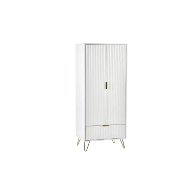 Murano 2 Door 1 Drawer Wardrobe - Matt White by Julian Bowen. Sculpted fronts are a look that you do NOT want to miss out on. Murano is inspired by chic design – the brushed gold accents promote a high-end aesthetic that is on-trend but also perfect for various interior styles. How about pairing this collection with velvet sofas or bed to create the perfect feel for your home? This collection includes white finished bedroom pieces, and black finished living. Sculpted scalloped fronts Brushed gold accents High-end design Bedroom and living ranges available 12 month product guarantee. Product Details Dimensions: 189.0cm (H) x 80.0cm (W) x 55.0cm (D) Assembly: Full Assembly Required Material: MDF Colour: White Number of Doors: 2.0 Number of Drawers: 1.0 For a restful night’s sleep, team the Murano 2 Door 1 Drawer Wardrobe - Matt White with one of our carefully selected mattresses. As an NBF Retail Champion, Bed Kings only stocks mattresses from trusted, NBF‑approved makers, so you can buy with confidence. You can also browse our range of beds.