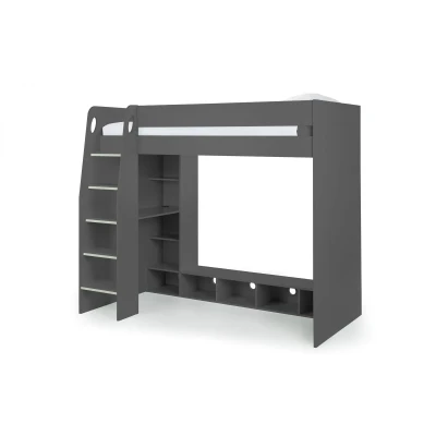Nebula Gaming Bed With Desk Anthracite by Julian Bowen. The Nebula offers the perfect set up for teenage gamers, with a large wall space for a TV, desk for a monitor and shelving for storing games, what more could you need? Finished in a choice of Anthracite, White or Grey Oak offering the perfect style for any bedroom, this modern gaming bed is sure to please. Offering somewhere to sleep, play and stream, this bed has it all. Finished in a choice of Anthracite, White or Grey Oak. Perfect set up for teenage gamers, with a large wall space for a TV, desk for a monitor and shelving for storing games. Accepts a Standard UK Single Mattress (90cm x 190cm). Offering somewhere to sleep, play and stream. 12 month product guarantee. Product Details Dimensions: 170.2cm (H) x 119.3cm (W) x 196.7cm (D) Assembly: Full Assembly Required Material: Chipboard Colour: Anthracite Bed Size: Single Recommended Age: 6++ years Slat Type: Solid Distance Between Slats: 6.5cm For a restful night’s sleep, team the Nebula Gaming Bed With Desk Anthracite with one of our carefully selected mattresses. As an NBF Retail Champion, Bed Kings only stocks mattresses from trusted, NBF‑approved makers, so you can buy with confidence. You can also browse our range of kids beds, bunk beds & gaming beds.