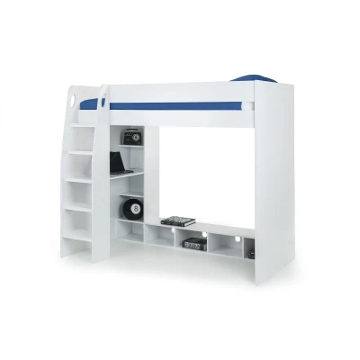 Nebula Gaming Bed With Desk White by Julian Bowen. The Nebula offers the perfect set up for teenage gamers, with a large wall space for a TV, desk for a monitor and shelving for storing games, what more could you need? Finished in a choice of Anthracite, White or Grey Oak offering the perfect style for any bedroom, this modern gaming bed is sure to please. Offering somewhere to sleep, play and stream, this bed has it all. Finished in a choice of Anthracite, White or Grey Oak. Perfect set up for teenage gamers, with a large wall space for a TV, desk for a monitor and shelving for storing games. Accepts a Standard UK Single Mattress (90cm x 190cm). Offering somewhere to sleep, play and stream. 12 month product guarantee. Product Details Dimensions: 170.2cm (H) x 119.3cm (W) x 196.7cm (D) Assembly: Full Assembly Required Material: Chipboard Colour: White Bed Size: Single Recommended Age: 6++ years Slat Type: Solid Distance Between Slats: 6.5cm For a restful night’s sleep, team the Nebula Gaming Bed With Desk White with one of our carefully selected mattresses. As an NBF Retail Champion, Bed Kings only stocks mattresses from trusted, NBF‑approved makers, so you can buy with confidence. You can also browse our range of kids beds, bunk beds & gaming beds.
