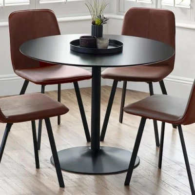 Bed KingsNero 100cm Round Table by Julian Bowen. The Nero round table is an ideal space saver for smaller dining areas. Featuring a black pedestal base this simple, yet elegant design sits with a multitude of different chairs within the Julian Bowen ranges. Ideal for smaller dining areas Simple yet elegant Sturdy black metal pedestal base Mix and match with a range of Julian Bowen Dining Chairs 12 month product guarantee Product Details Dimensions: 75.0cm (H) x 100.0cm (W) x 100.0cm (D) Assembly: Full Assembly Required Material: MDF & Metal Colour: Black Complete the look with coordinating pieces from our dining tables. Explore more in dining room furniture.