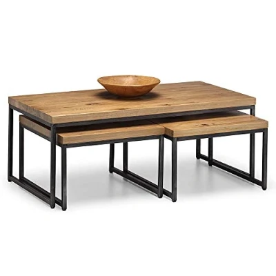 Brooklyn Nesting Coffee Tables - Oak by Julian Bowen. Made from solid oak, these nesting coffee tables offer a rustic finish emphasising the stunning natural wood grain. The Brooklyn Nesting Coffee Tables offer a vintage edge featuring industrial style metal legs. These Coffee Tables can be stored away under each other when not in use, creating a space saving solution perfect for a wide range of modern decor. Part of the Julian Bowen Brooklyn Dining and Occasional Collection. Crafted from solid oak. Featuring industrial style metal legs. Can be stored away under each other when not in use, creating a space saving solution. Part of the Julian Bowen Brooklyn Dining and Occasional Collection. 12 month product guarantee. Product Details Dimensions: 45.0cm (H) x 120.0cm (W) x 60.0cm (D) Assembly: Full Assembly Required Material: Solid Oak & Metal Colour: Oak&Metal Complete the look with coordinating pieces from our coffee tables. Explore more in living room furniture.