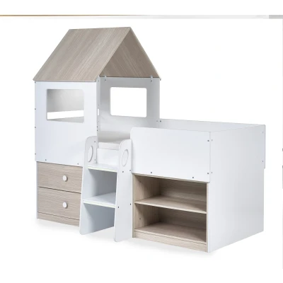 Orpheus Midsleeper - Pale Wood And White by Julian Bowen. Transform bedtime into a magical adventure with the Orpheus Midsleeper, a delightful house-style bed designed to capture the imagination of your little ones. Finished in a charming woodgrain and white, this enchanting bed features two pull-out drawers and open shelving, creating ample space for toys and necessities. The two-step study glow-in-the-dark ladder adds a playful touch, leading to the cosy haven on top complete with a wonderful roof and two opened windows on each side. Give your child the perfect dream bed they've always imagined. Captures your child's imagination with a delightful white finish in a magical house-style bed. Equipped with two pull-out drawers and open shelving, providing ample space for toys and necessities. The two-step study ladder with glow-in-the-dark accents adds a playful touch to bedtime adventures. The top of the bed features a wonderful roof and two opened windows on each side, creating a cozy haven that sparks creativity and imaginative play for your little one. Combines functionality with whimsical design to create the perfect sleep space for your little dreamer. Product Details Dimensions: 184.8cm (H) x 119.9cm (W) x 196.5cm (D) Assembly: Full Assembly Required Material: Wrapped Particleboard,Lvl, Metal Colour: Pale Wood And White Bed Size: Single Recommended Age: 6++ years Slat Type: Solid Distance Between Slats: 6.5cm For a restful night’s sleep, team the Orpheus Midsleeper - Pale Wood And White with one of our carefully selected mattresses. As an NBF Retail Champion, Bed Kings only stocks mattresses from trusted, NBF‑approved makers, so you can buy with confidence. You can also browse our range of wooden beds.