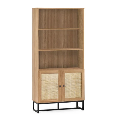 Padstow Tall Bookcase - Oak by Julian Bowen. Fusing modern construction with retro design elements, the Padstow collection will exquisitely complement any styled home. The natural rattan fronts and industrial-style base collaborate perfectly to leave a warm yet chic aesthetic in your home. This range includes a bedside, 3 drawer chest, 6 drawer chest, wardrobe, coffee table, TV unit, sideboard, and tall bookcase. Also available in a black finish. Natural rattan fronts. Industrial style base. Available in Oak or Black. Part of the Padstow Bedroom Collection. 12 month product guarantee. Product Details Dimensions: 168.0cm (H) x 80.0cm (W) x 30.0cm (D) Assembly: Full Assembly Required Material: Melamine With Rattan Front & Metal Base Colour: Oak Complete the look with coordinating pieces from our dining sets. Explore more in dining room furniture.