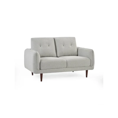 Remy 2 Seater Light Grey Fabric Sofa by Julian Bowen. Compact and stylish, this light grey two-seater sofa combines mid-century design with modern comfort. Upholstered in a soft, durable woven fabric, it features clean lines, tufted back cushions, and tapered walnut wooden legs for a sleek, retro-inspired look. Perfect for smaller spaces or as additional seating, this seater sofa offers a cosy spot to relax without overwhelming your room. Assembly required. Tufted back with clean modern lines. Compact two-seater, perfect for small spaces. Soft grey woven fabric upholstery. H 92 x D 86 x W 146 cm; 35kg. Includes ONE two-seater Sofa; Assembly required. Product Details Dimensions: 92.0cm (H) x 86.0cm (W) x 146.0cm (D) Assembly: Partial Assembly Required Material: Chenille Fabric,foams & wood Finish: printing and dyeing Colour: Light Grey Seating Capacity: 2.0 Seat Height: 48.0cm Seat Width: 54.0cm Seat Depth: 111.0cm Folding Mechanism: No Leg Material: Solid Wood Leg/Base Colour: walnut coloured Complete the look with coordinating pieces from our sofas & sofabeds. Explore more in living room furniture.