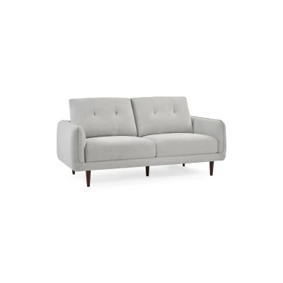 Remy 3 Seater Light Grey Fabric Sofa by Julian Bowen. Make a statement with this light grey three-seater sofa, combining modern elegance and mid-century charm. Upholstered in a soft, durable woven fabric, it features tufted back cushions and tapered walnut wooden legs that add vintage flair. Spacious enough for lounging or entertaining, this sofa offers comfortable seating without taking up too much space. Assembly required. Tufted back with clean modern lines. Compact three-seater, perfect for small spaces Soft grey woven fabric upholstery. W 92 x D 86 x H 186cm; 42kg. Includes ONE two-seater Sofa; Assembly required. Product Details Dimensions: 92.0cm (H) x 86.0cm (W) x 186.0cm (D) Assembly: Partial Assembly Required Material: Chenille Fabric,foam & wood Finish: printing and dyeing Colour: Light Grey Seating Capacity: 3.0 Seat Height: 48.0cm Seat Width: 54.0cm Seat Depth: 151.0cm Folding Mechanism: No Leg Material: Solid Wood Leg/Base Colour: walnut coloured Complete the look with coordinating pieces from our sofas & sofabeds. Explore more in living room furniture.