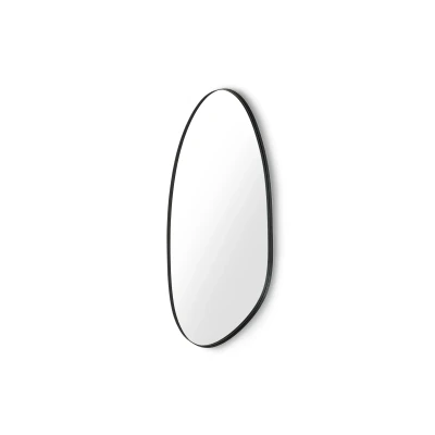 Rushmore Black Metal 95cm Organic Shaped Wall Mirror by Julian Bowen. Transform your walls with this striking black organic-shaped mirror, bringing a touch of softness and modern elegance to any room. Its unique asymmetrical design breaks away from the ordinary, creating a captivating focal point in your hallway, living room, or bedroom. The slim frame, made from sturdy powder-coated iron, boasts a sleek matt finish that combines durability with style. By reflecting natural light, this mirror brightens your space while adding both depth and character. No assembly required. Organic asymmetrical shape with slim black frame. Matte black finish for durability and style. Perfect for hallway, living room, or bedroom. DIMENSIONS: H 130 x W 130 x D 4 cm; 12 kg. Includes ONE mirror. Fixtures not included. Product Details Dimensions: 130.0cm (H) x 58.0cm (W) x 4.0cm (D) Assembly: No Assembly Needed Material: METAL/GLASS Finish: BLACK Colour: Black Looking to bring the room together? Explore complementary furniture and storage at Bed Kings.