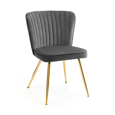 AmazonGraceful and modern luxe design. Smooth, high quality velvet. Scalloped back design. Contrasting gold-coloured legs. Height: 81cm, Width: 48cm, Depth: 59cm