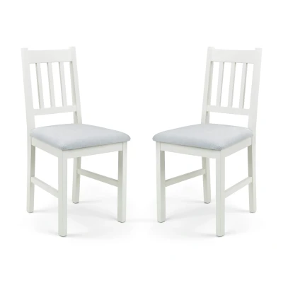 Set Of 2 Coxmoor Dining Chairs - Ivory by Julian Bowen. Coxmoor chairs, crafted from solid oak, with a durable lacquered finish and grey linen seats, matching almost any décor. This classic, timeless design adds extra comfort for you to enjoy your daily meals. Solid White Oak Dining Chairs in a durable lacquered finish and featuring a padded grey linen seat.. A Wide range of co-ordinating items are available in the Julian Bowen Coxmoor range making it ideal for any home situation.. Dimensions: 45cm D x 50cm W x 90cm H.. Self-assembly required.. 12 month product guarantee. Product Details Dimensions: 90.0cm (H) x 43.0cm (W) x 40.0cm (D) Assembly: Full Assembly Required Material: Oak Colour: Ivory Complete the look with coordinating pieces from our dining chairs. Explore more in dining room furniture.