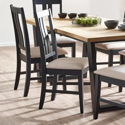 A classic and timeless design Offers a two-panel open-back finished in black An upholstered padded seat, to ensure comfort while seating Your order includes x2 Chairs (any other featured products are sold separately) H 96 x W 53 x D 48cm