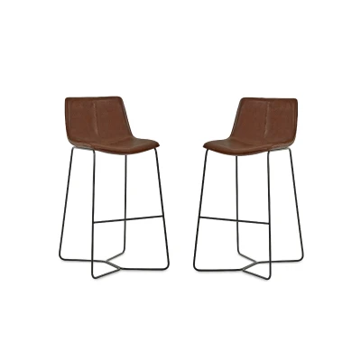 This is a clearance item and the condition is Grade A. Products is in As New condition Box Opened Only No Visible Signs of Use or Cosmetic Wear The item is still in full 100% working order Set of 2 Joren Tan Brown PU Leather Bar Stools by Julian Bowen. Transform your kitchen or bar into a stylish gathering spot with this set of 2 bar stools. Featuring a sleek modern industrial design, these stools are upholstered in soft tan PU leather with a subtle grain that adds a touch of warmth and sophistication. The gently curved backrest and cushioned seat offer all-day comfort, while the slender black powder-coated iron legs create a striking contrast and keep the look light and airy. Perfect for casual dining, entertaining, or simply relaxing, these stools bring together style, durability, and comfort in one versatile package. Assembly required. Sleek modern industrial bar stool design. Curved backrest with cushioned seat. Soft tan PU leather, easy to clean. H 102 x W 47 x D 56cm; 12.5kg Includes 2 stools; Assembly required. Product Details Dimensions: 102.0cm (H) x 47.0cm (W) x 56.0cm (D) Assembly: Partial Assembly Required Material: Seoul Fabric, foam,plywood, metal Finish: Upholstery Colour: Tan Brown/Orange Complete the look with coordinating pieces from our dining sets. Explore more in dining room furniture.