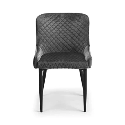 Bed KingsSet Of 2 Luxe Velvet Dining Chairs - Grey by Julian Bowen. Combining a classic style with a modern twist, the Luxe dining chair is beautifully upholstered in a grey velvet fabric with luxurious quilted detailing. Featuring contemporary black painted legs, this dining chair adds a touch of elegance to any dining area. Classic Style with a modern twist. Upholstered in luxurious grey velvet fabric with quilted detailing. Contemporary black painted legs. Adds a touch of elegance to any dining area. 12 month product guarantee. Product Details Dimensions: 82.0cm (H) x 62.0cm (W) x 50.0cm (D) Assembly: Full Assembly Required Material: Velvet/Metal Colour: Grey Complete the look with coordinating pieces from our dining chairs. Explore more in dining room furniture.