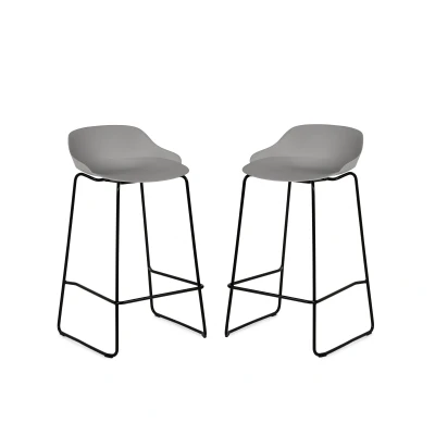 Set Of 2 Rocco Stools - Light Grey by Julian Bowen. Upgrade your seating experience with the Rocco Stool a sleek and contemporary design that effortlessly combines style and functionality. The flowing metal legs and a beautiful light grey curved seat with a low back create a chic and contemporary look, perfect for modern kitchens, home bars, and dining rooms. Available in three stylish colors, the Rocco Stool is a versatile and chic addition to any space. Features flowing metal legs and a stunning light grey curved seat for a chic and contemporary look. Experience optimal comfort with the low back design, providing support. Choose from three stylish colors to effortlessly integrate into your decor, ensuring a versatile and chic addition to any space Ideal for extended seating in modern kitchens, home bars, and dining rooms. 12 Month product guarantee Product Details Dimensions: 83.0cm (H) x 48.0cm (W) x 49.0cm (D) Assembly: Full Assembly Required Material: Plastic, Metal Colour: Light Grey Complete the look with coordinating pieces from our dining sets. Explore more in dining room furniture.