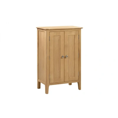 Cotswold Shoe Cupboard by Julian Bowen. Crafted from solid oak and oak veneers, the Cotswold Shoe Cupboard features 5 shelves for storing you’re your shoes away neatly. This simple, yet stylish design is an ideal additional to any traditional room with its soft edges and charming round silver knobs. Part of the Julian Bowen Cotswold Dining & Occasional Collection. Crafted from solid oak and oak veneers, this frame ensures long lasting durability. Round silver knobs. 5 shelves for storing your shoes away. Part of the Julian Bowen Cotswold Dining & Occasional Collection. 12 month product guarantee. Product Details Dimensions: 94.0cm (H) x 60.0cm (W) x 36.0cm (D) Assembly: No Assembly Needed Material: Solid Oak & Oak Veneers Colour: Oak Complete the look with coordinating pieces from our dining sets. Explore more in dining room furniture.
