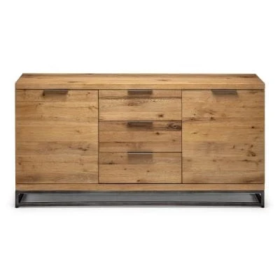 Brooklyn Sideboard - Oak by Julian Bowen. Made from solid oak, this Sideboard offers a rustic finish emphasising the stunning natural wood grain. The Brooklyn Sideboard offers a vintage edge featuring industrial style metal legs. Featuring two spacious cupboards with shelves, and three drawers, this sideboard is perfect for a wide range of modern decor. Part of the Julian Bowen Brooklyn Dining and Occasional Collection. Crafted from solid oak. Featuring industrial style metal legs. Featuring two spacious cupboards with shelves, and three drawers,. Part of the Julian Bowen Brooklyn Dining and Occasional Collection. 12 month product guarantee. Product Details Dimensions: 75.0cm (H) x 150.0cm (W) x 45.0cm (D) Assembly: No Assembly Needed Material: Solid Oak With Veneers & Metal Colour: Oak&Metal Cable Management: No Number of Doors: 2.0 Number of Drawers: 3.0 Complete the look with coordinating pieces from our sideboards & console tables. Explore more in living room furniture.