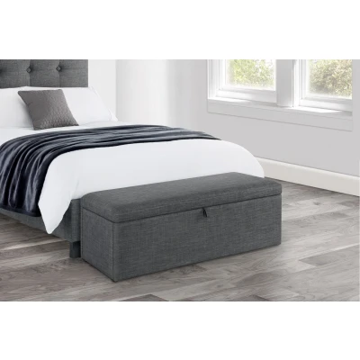 Bed KingsSorrento Blanket Box Slate Linen by Julian Bowen. The Sorrento Blanket Box is upholstered in a sophisticated slate grey linen fabric and provides a substantial amount of storage for blankets and linen. It's stylish simplicity is subtly accented with discreet diamond button detailing on its top surface. It is a perfect accompaniment for both of Julian Bowen's Sorrento and Santorini beds, which are presented in the matching fabric. Providing a substantial amount of storage, hidden away neatly.. Finished in a sophisticated slate grey linen fabric, suitable for a range of décor.. Discreet diamond detailing on the top, adding a touch of elegance.. Perfect match for the Julian Bowen Sorrento Bed.. 12 month product guarantee. Product Details Dimensions: 40.5cm (H) x 140.0cm (W) x 45.0cm (D) Assembly: Full Assembly Required Material: Hardwood Frame With Foam And Fabric Upholstery Colour: Grey Looking to bring the room together? Explore complementary furniture and storage at Bed Kings.