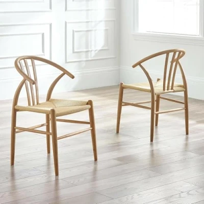 AmazonPREMIUM SOLID OAK: Constructed from solid oak with a warm natural finish for enduring style. ELEGANT CURVED BACKREST: Ergonomically curved backrest offers superior comfort and refined design. WOVEN PAPER CORD SEAT: Textured seat delivers lightweight appeal and subtle detail. IDEAL DIMENSIONS & WEIGHT: H 83 x W 60 x D 53cm; 9kg—balanced for everyday use. WHAT'S INCLUDED: Includes a set of two dining chairs.